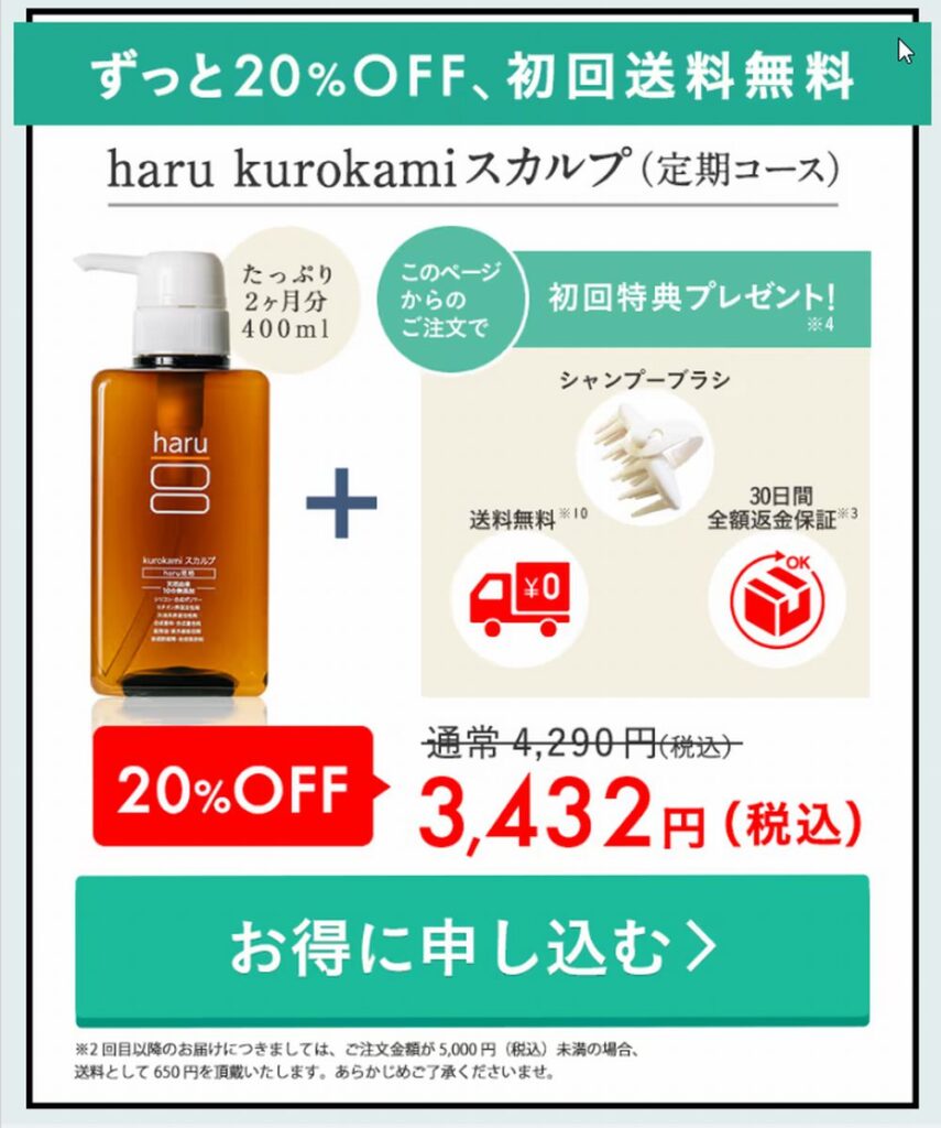 haru黒髪スカルプシャンプーの通販は、ココがやすい